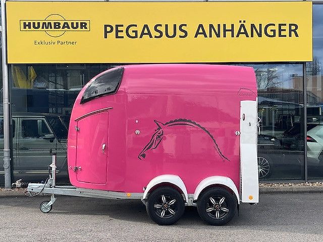GesGew: 2400kg Leergewicht: 978kg Nutzlast: 1422kg Gesamtmaße: 4500mm x 2220mm x 2745mm Innenmaße: 3353mm x 1650mm x 2315mm WCF- Fahrgestell incl. Stoßdämpfer 100km/h Zulassung Trittleisten auf der Heckklappe Planenrollo Sattelkammer Besen und Schaufel in Sattelkammer Seitenpolster Futtertröge Seitentrittschutz Spiegel an der Sattelkammertür Höhenverstellbares Boxenstangensystem Innenbeleuchtung Aufstellfenster Bug Automatikstützrad Innenbeleuchtung V-Deichsel Rangiergriff